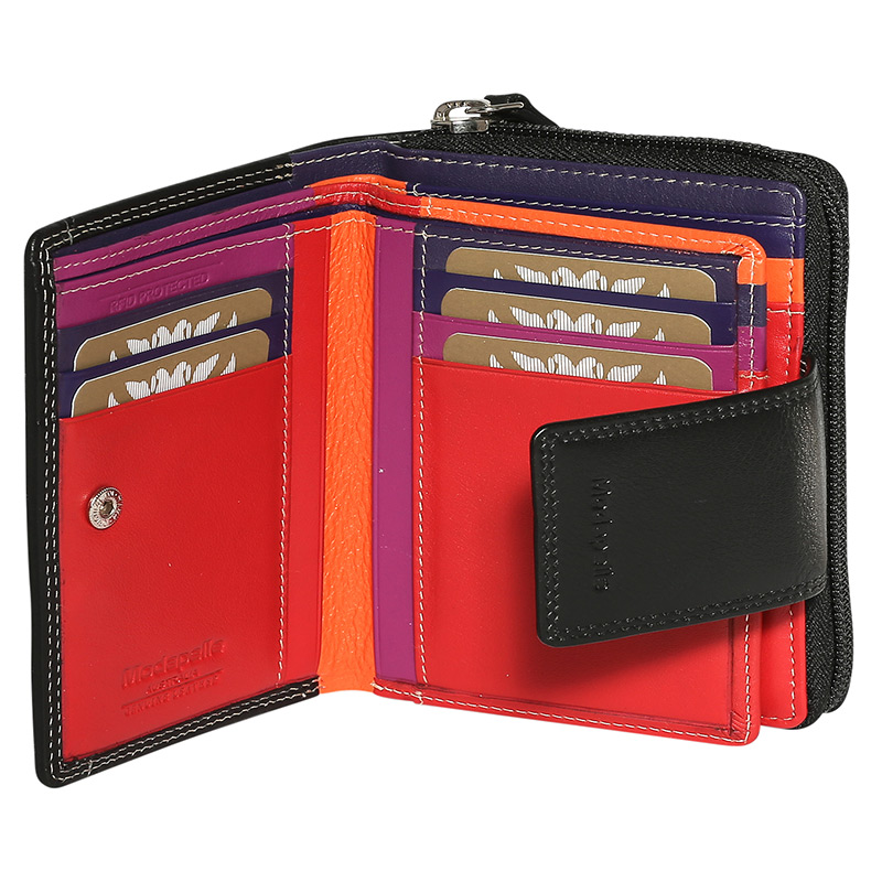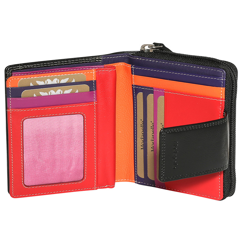 Leather Black & Multi Coloured Wallet 7328BMU - Modapelle | Leather Handbags & Wallets Wholesaler & Importer